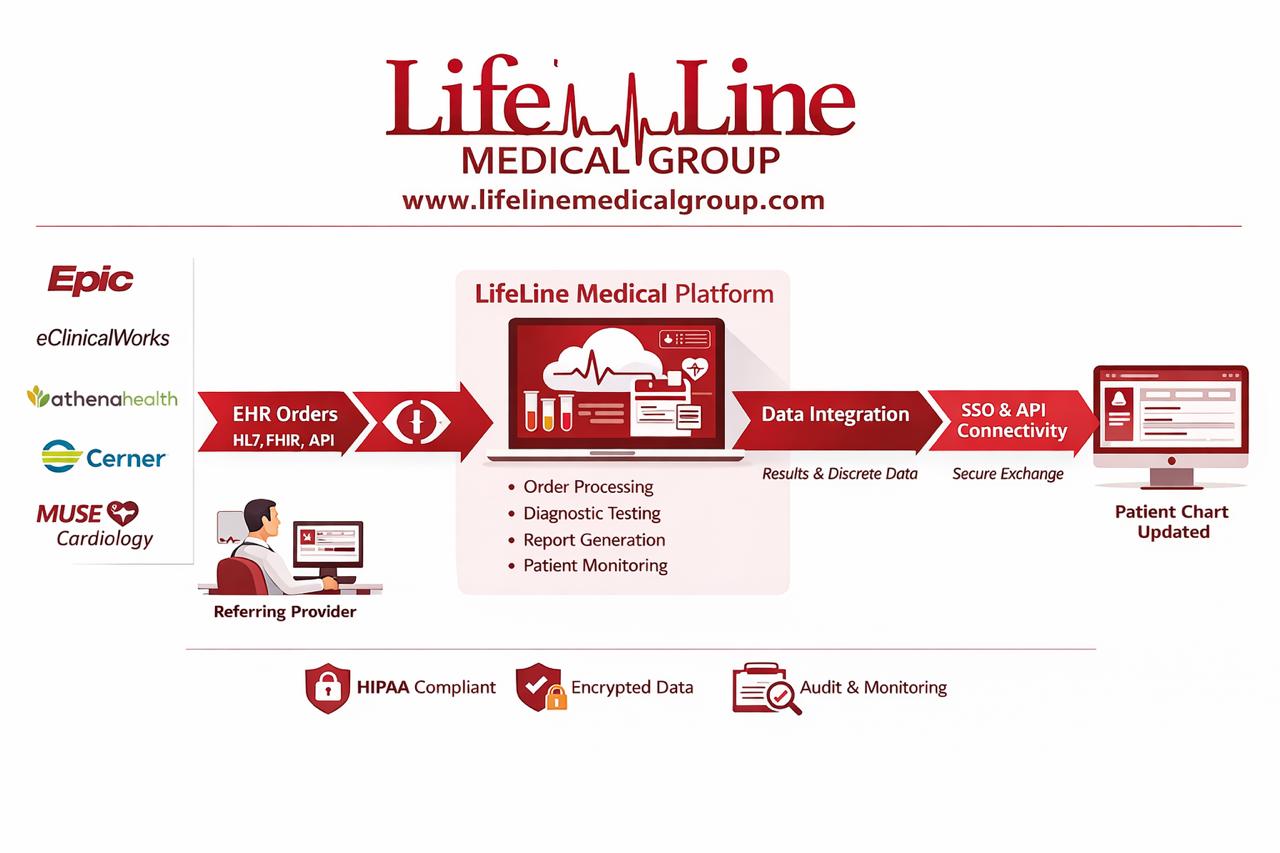 <strong “>LifeLine Medical Group LLC’s next generation, LLMG360+™ multi-diagnostic platform, offers a wide array of monitoring solutions in one location. Eliminating the burden of having to log into several portals when ordering multiple tests for a singular patient. Our platform delivers secure, scalable, and fully interoperable EHR integration with all major healthcare platforms. We ensure seamless electronic ordering, structured results delivery, and real-time data exchange to optimize clinical workflow and revenue cycle coordination.